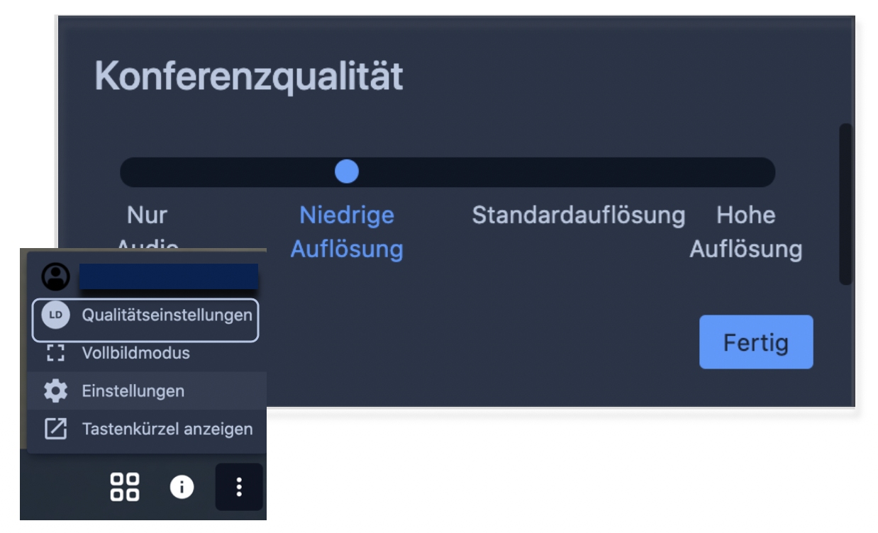 - Schieben Sie den Regler auf «niedrige Auflösung» oder «nur Audio»